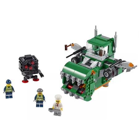 Le Trash Chomper 2-en-1 est un set LEGO polyvalent qui permet de construire deux véhicules emblématiques de The LEGO Movie. Le premier modèle est un camion poubelle classique avec un compartiment pour vider les poubelles, équipé d’une bouche de broyeur articulée pour avaler les déchets.
