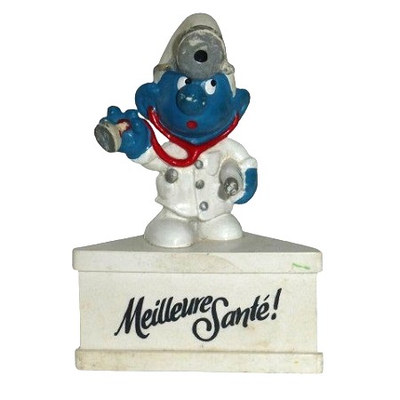 schtroumpf Docteur avec socle Meilleure Santé 1980 Schleich W.Germany.